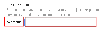 Второе поле внешнее имя. Введенное здесь значение будет использоваться при выгрузке данных из Google Analytics, например по API. Оно состоит из двух частей: