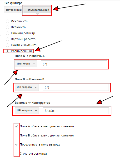 Если на сайте присутствует несколько доменов третьего уровня (поддоменов) и они схожи по своей структуре (например, msk.domain.ru/page , spb.domain.ru/page и т.п.), то при сборе данных с разных поддоменов в один счетчик Google Analytics, информация по /page будет суммироваться, что не правильно. Для этого необходимо в URI страницы добавить или дописать доменное имя. Делается это с помощью пользовательского фильтра Google Analytics.