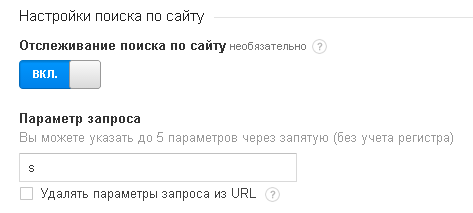 Переведите переключатель в положение ВКЛ, в строке Параметр запроса необходимо указать имя параметра из адресной строки браузера, который содержит запрос вводимый пользователем: