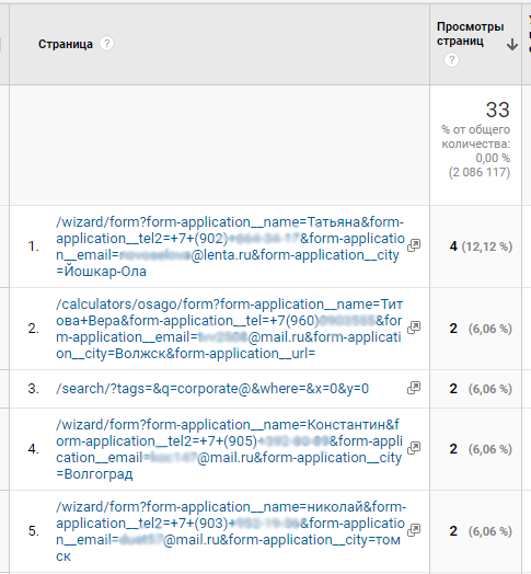 А как мы помним Google Analytics фиксирует все посещенные пользователем URL.