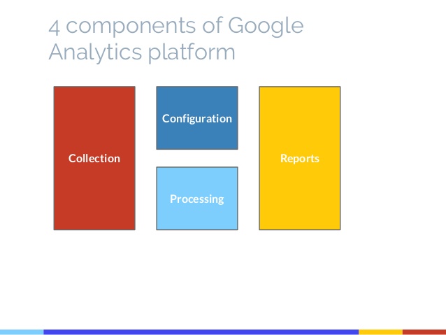 Чтобы отобразить отчеты в интерфейсе Google Analytics (далее GA), происходит следующее: сбор данных, обработка данных, формирование отчета.