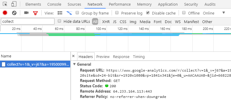 Можете открыть в браузере Панель для разработчиков, вкладка Network, сделать фильтр по слову “collect” и посмотреть подробную информацию по запросу.