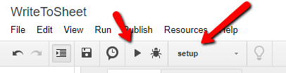 Запускаем функцию setup() и даем доступы на выполнение скрипта: