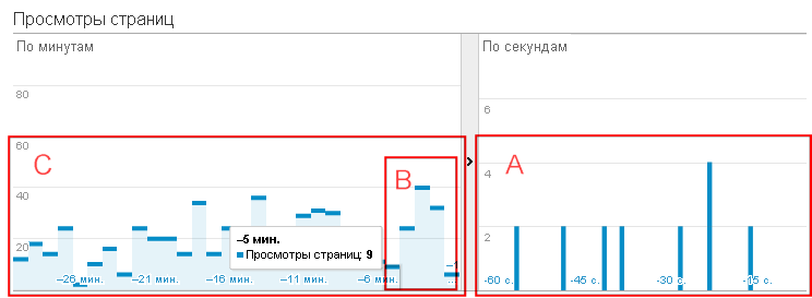 - график отражающий посещения в разрезе последних 30 минут и 60 секунд;