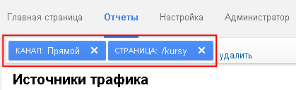 Иными словами можно сказать, что используется фильтр для выборки нужной информации из всего доступного объема. Для того, чтобы сбросить (исключить) один из вариантов фильтра нажмите на изображение крестика справа от него. Если вы хотите полностью очистить фильтр (вернуться к начальному виду отчета) нажмите на ссылку удалить.