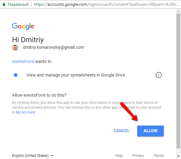 При первом деплое, нужно пройти процесс авторизации. Описывать не буду, покажу скриншотами.