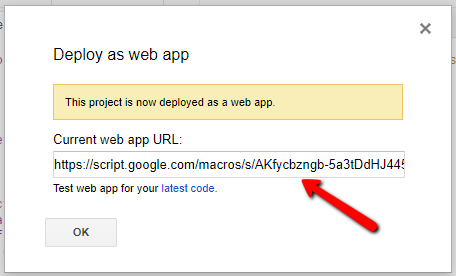 Далее вам будет показан попап с ссылкой на ваш web app: