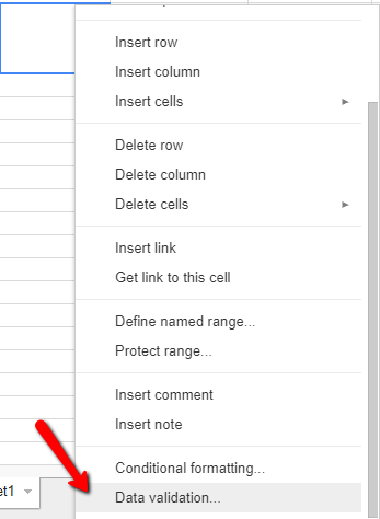 Выбираем ячейку — Клик правой кнопкой — Валидация данных.