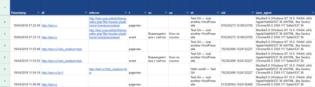 Теперь мы через Measurement Protocol создадим события по каждому из пользователей.