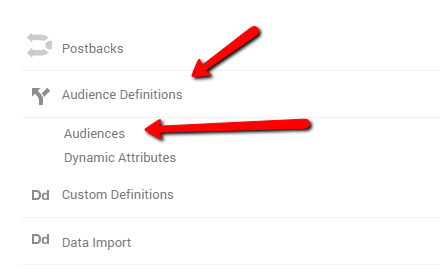 Открываем Google Analytics — Настройки — Определение аудиторий — Аудитории.